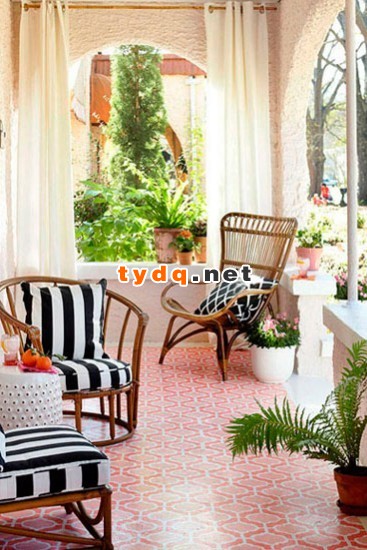 把阳台改造成一个五脏俱全的小花房其实很简单,挑选些漂亮植物和亲近自然的铁艺家具就可以了,还可以选择吊篮来盛装叶茎垂下来的绿植。