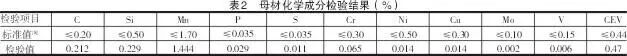 从焊接板母材上随机取样进行化学成分检验,其结果见表2。