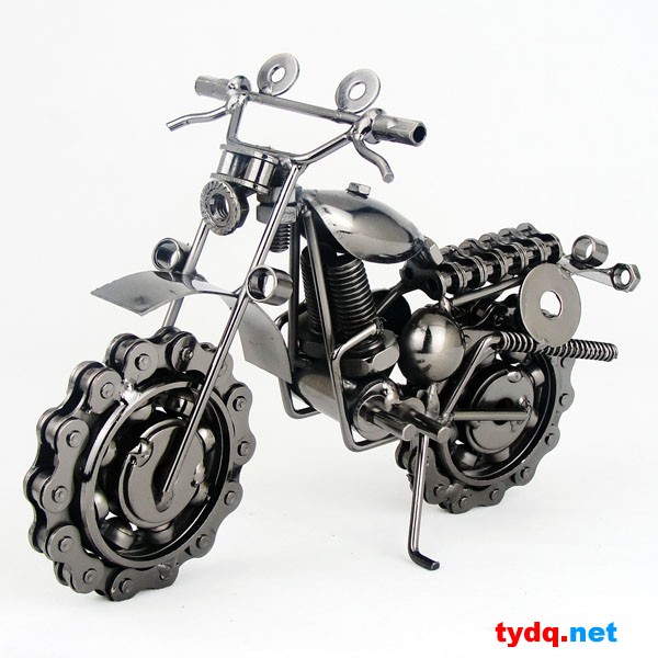 这些铁艺摩托艺品全体以金属架构,用专业设备和锻打技能加工而成,做工精密,仿古造型,高温焊接完成,粉体静电烤漆制造,既美观又适用,广受市场欢送。