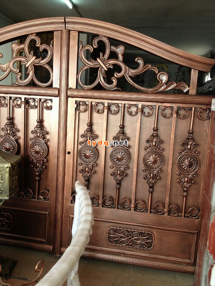③ 合金铸造入户门、别墅庭院门、围栏、扶手,百年不生锈,防盗、防压的顶级产品。合金入户门板采用欧盟板焊接成,门头采用拱型